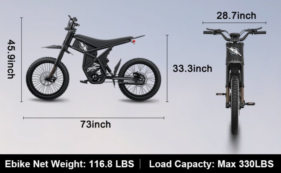 Experience the ultimate versatility and control with Riding'Times GT73 2000W Electric Motorbike! The durable carbon steel alloy frame and dual hydraulic full suspension make it perfect for any terrain, while the advanced braking system and 5-inch display ensure your safety. Switch seamlessly between motorcycle and bicycle modes and ride with confidence and ease. Don't miss out on this incredible, game-changing product!