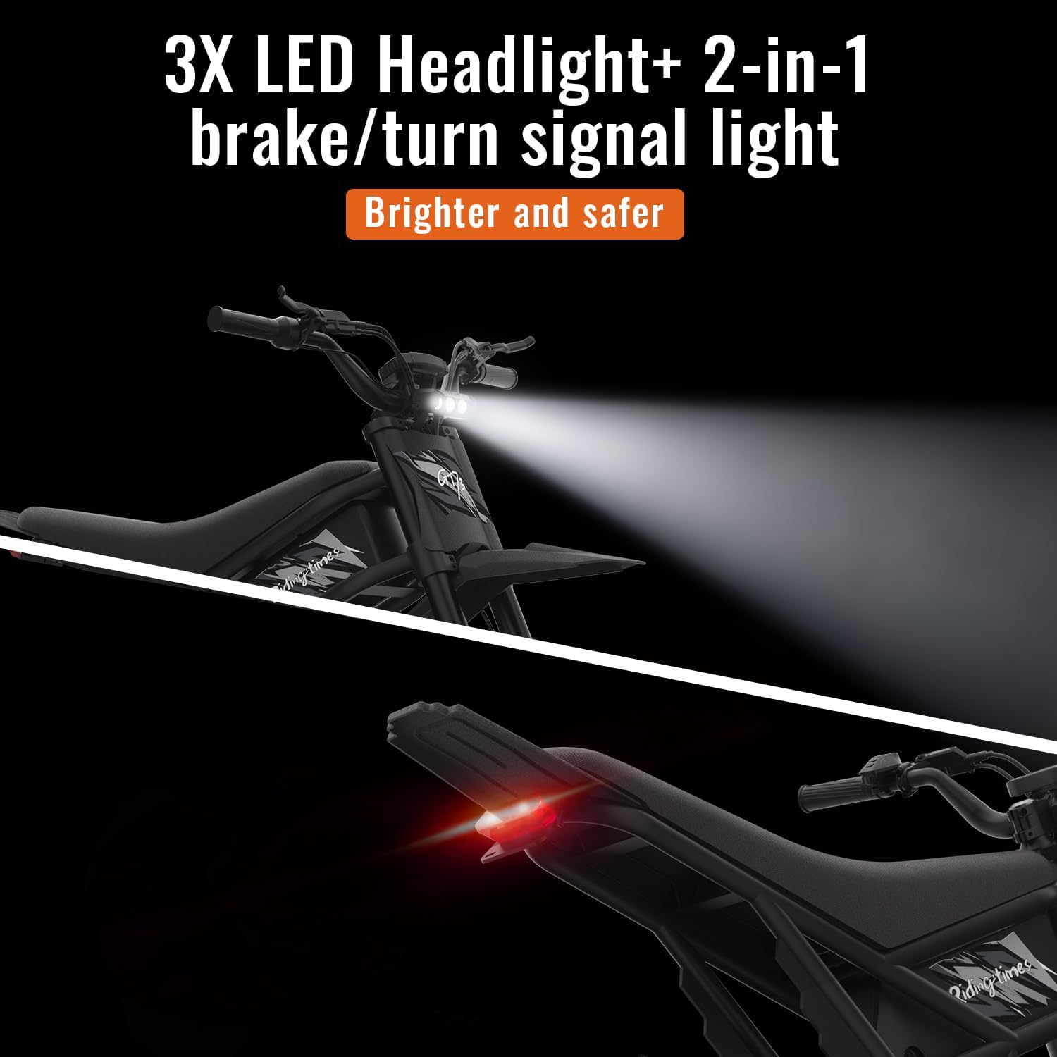 3X front lights and an integrated rear light with turn signals, brake light, and tail light